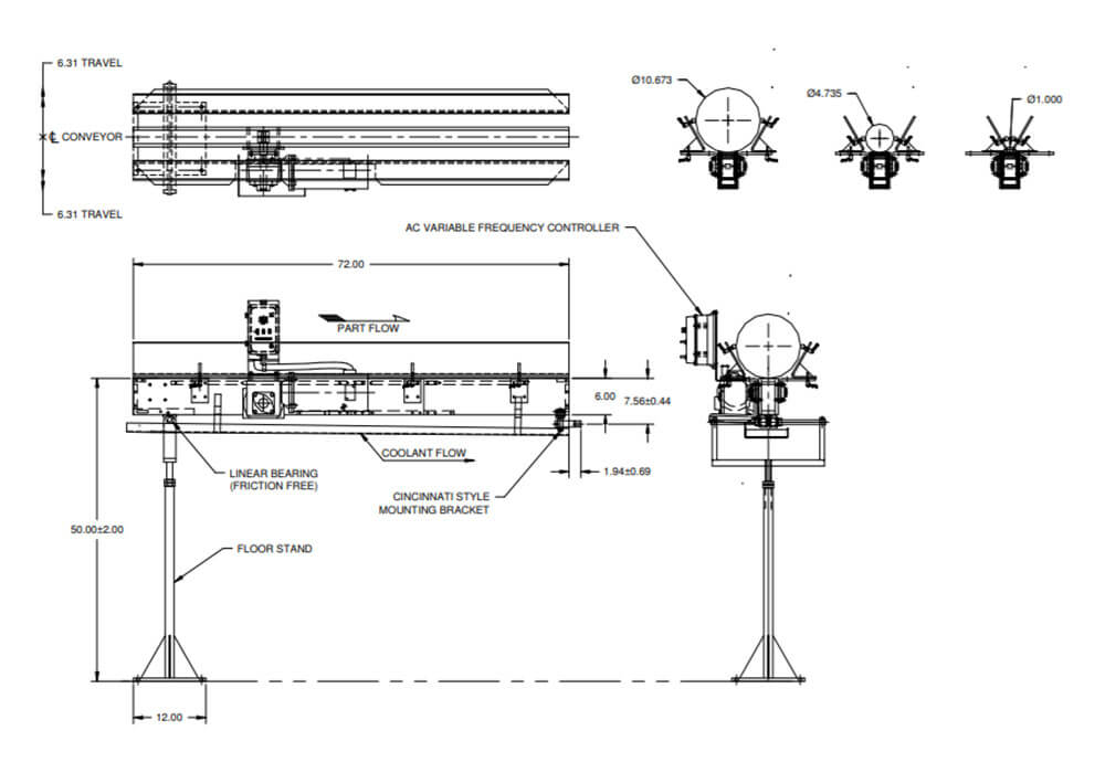 Convey Bearing Races to the workrest of a Centerless Grinder.